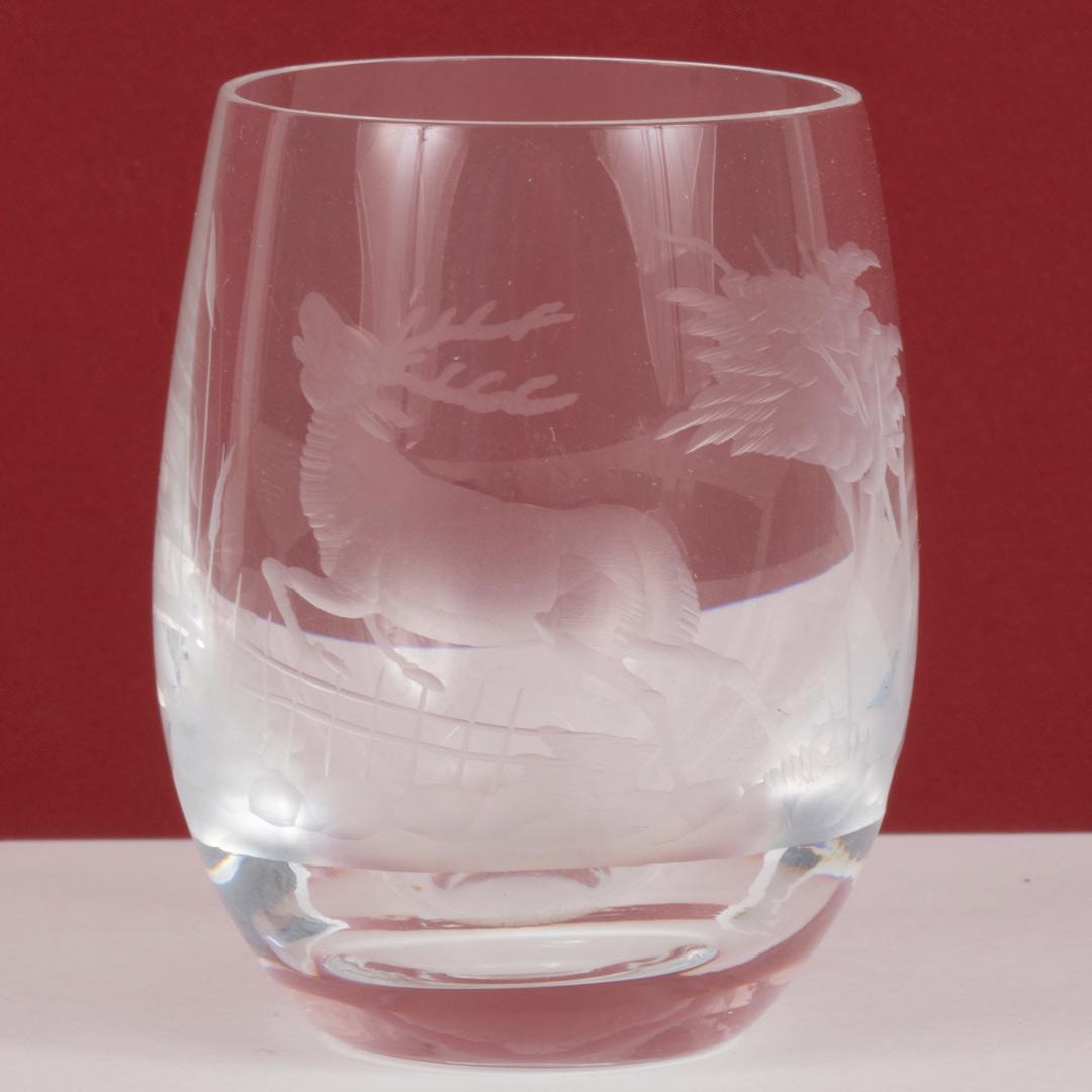 Made of engraved crystal, the Chasse glass service is superb in its details! Each animal is immersed in its forest, each time different: The wild boar, the deer, the guinea fowl, the partridge, the duck and the roe deer.We have chosen to decline them in 3