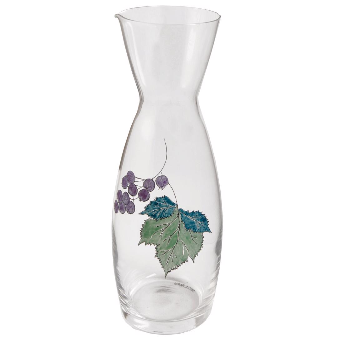 The branch of berries is nicely positioned in the middle of the carafe. Gooseberries or blackcurrants, the large leaf is glazed in two color tones.