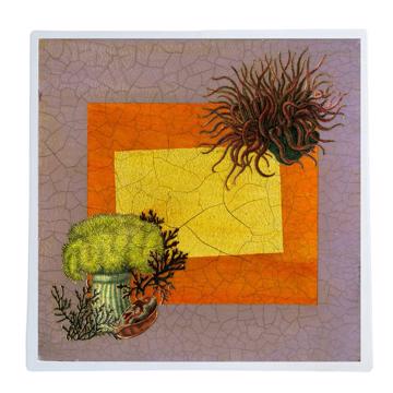 - Décor de set de table réalisé à partir de la technique du chromo et met en scène des gravures anciennes sur fonds de couleurs