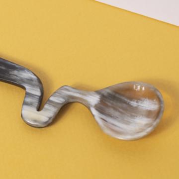 La cuillère à encoche est imaginée pour être posée sur le rebord de la verrine et laisser le miel s’échapper.