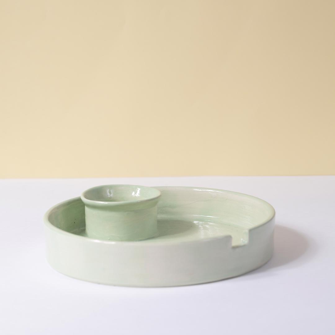 Le coquetier Chanteclerc intègre une petite coupelle avec une encoche pour poser la cuillère à œuf. Disposez autour la baguette au beurre pour un œuf coque bien français.